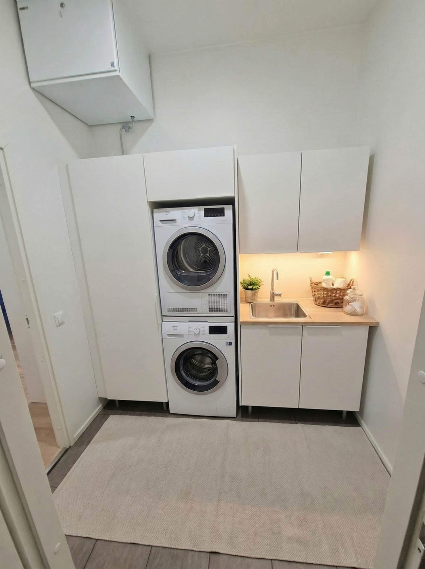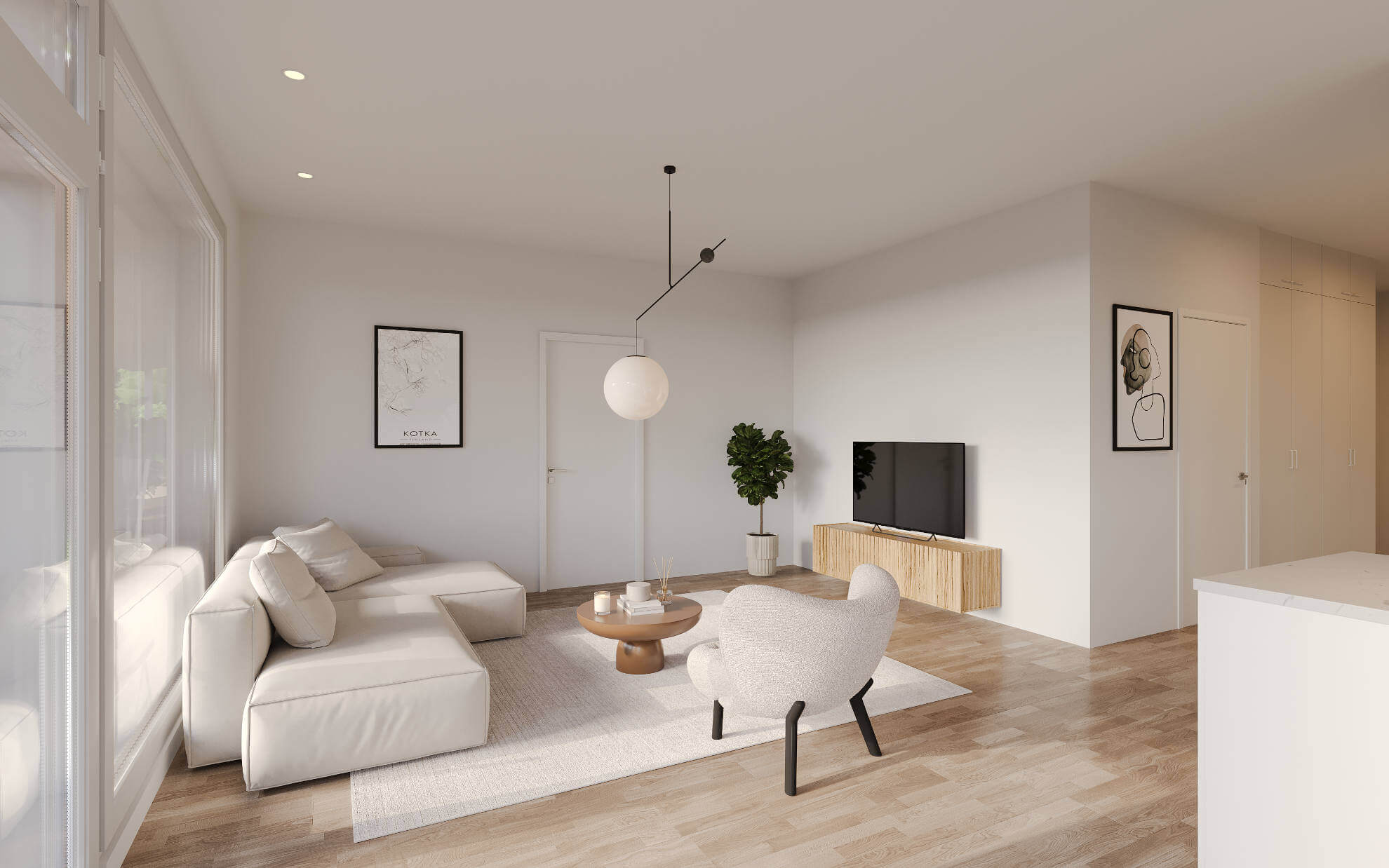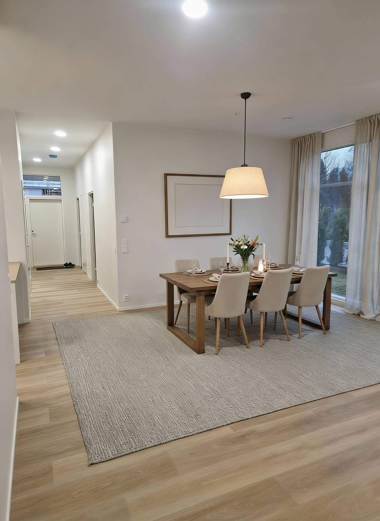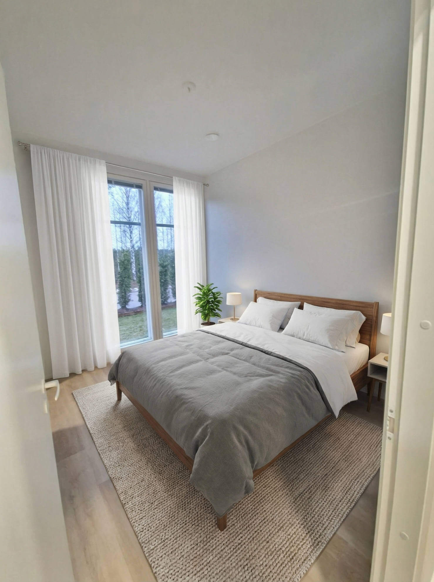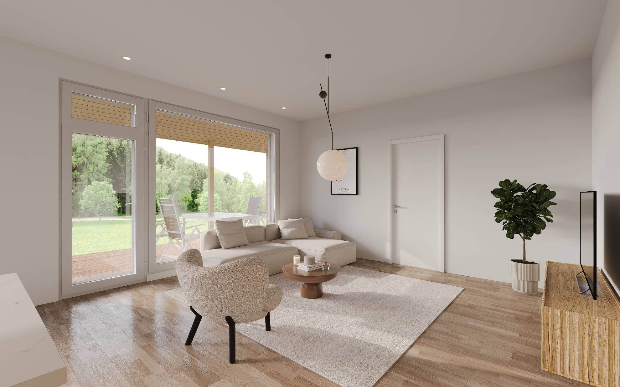 Kodin sisäkorkeus on 2,8 m ja isot ikkunat tuovat avaruutta ja luonnonvaloa sisätiloihin. Asunnossa on kolme makuuhuonetta joista yhdessä makuuhuoneessa on erillinen vaatehuone. Lisäksi tässä kodissa on käytännöllinen kodinhoitohuone, josta on suora käynti ulos, erillinen wc sekä tilava kylpyhuone ja sauna. Piha-alueella nurmet ja istutukset valmiina. Talossa on kaukolämpö vesikiertoisella lattialämmityksellä sekä koneellinen ilmanvaihto, LTO. Asunnon yhteydessä on autokatos.